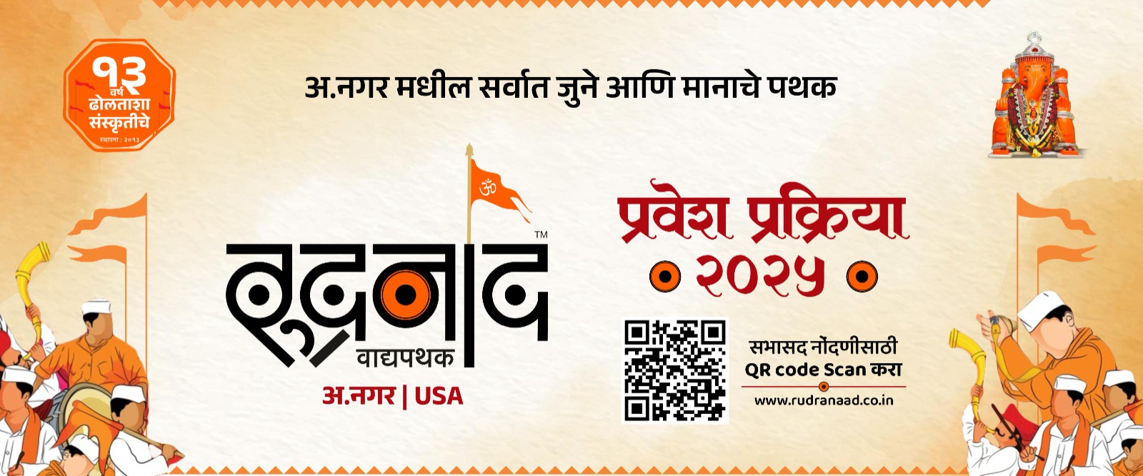 रुद्रनाद गेली १३ वर्ष झालीत नगर मध्ये सातत्याने ढोल वादन व सामाजिक कार्य करत आहे. मग ते वादन करून असो किंवा
